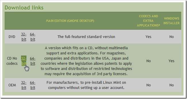 Що стосується Linux Mint: подібно до роботи з WUBI / Ubuntu, Mint пропонує інсталятор Windows як на 32-бітній, так і на 64-бітній версіях версії компакт-дисків їх найновішого випуску. (З огляду на те, якщо ви не впевнені, яку версію використовувати, вам буде безпечно вибрати 32-розрядну версію.)