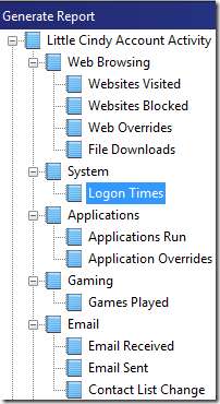 Ось повний розширений деревоподібний перегляд кожної речі, на яку ви можете подивитися та отримати звіт. Як ви можете собі уявити, цей звіт дуже зручний, коли вони намагаються заперечити, що вони були на певному сайті чи працювали в певній програмі, але у вас є докази!