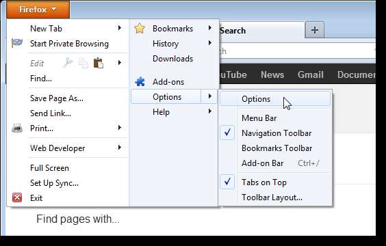 Якщо вам потрібно з’ясувати, яким є ваш пароль для певного веб-сайту, для якого ви зберегли дані для входу, ви можете легко це зробити. Щоб переглянути збережені паролі у Firefox, виберіть Параметри в меню Firefox.
