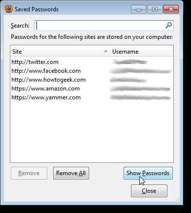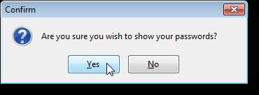 З'явиться діалогове вікно підтвердження, щоб переконатися, що ви хочете показати свої паролі. Натисніть Так, якщо ви все ще хочете переглянути свої паролі.