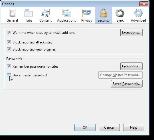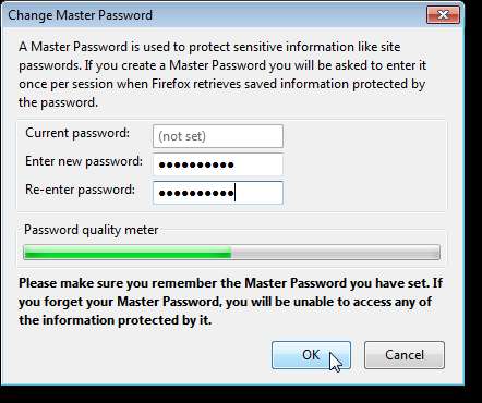 Якщо ви збираєтеся використовувати Firefox Password Manager, ми настійно рекомендуємо застосувати головний пароль до ваших збережених імен користувачів та паролів. Без головного пароля, якщо хтось отримає доступ до вашого облікового запису, він може легко відкрити менеджер паролів і переглянути ваші паролі. Щоб додати головний пароль, знову відкрийте діалогове вікно «Параметри» та встановіть прапорець «Використовувати головний пароль».