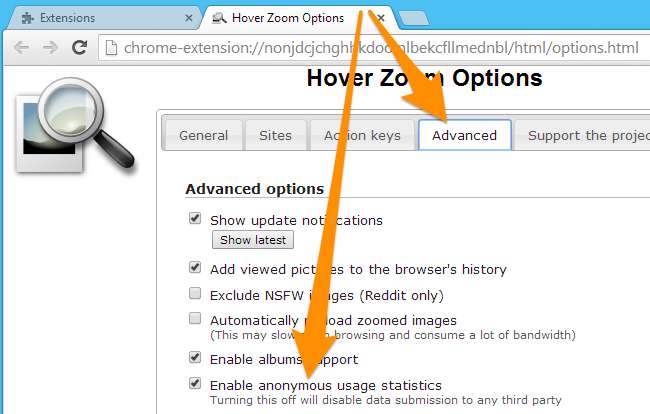Цим розширенням "дозволено" брати участь у цій поведінці відстеження, оскільки вони "розкривають" це на своїй сторінці опису або в певний момент на панелі параметрів. Наприклад, Розширення HoverZoom , який має мільйон користувачів, у нижній частині сторінки опису сказано наступне:
