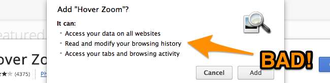 Що ще гірше, багато з цих розширень змінили власників протягом останнього року - і будь-кого, хто коли-небудь писав продовження, заповнюють прохання продати його продовження тіньовим особам, які потім заразити вас рекламою або підглядати . Оскільки розширення не вимагають нових дозволів, ви ніколи не матимете можливості з’ясувати, які з них додали секретне відстеження без вашого відома.