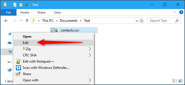 Щоб переглянути вміст файлу CSV у Блокноті, клацніть його правою кнопкою миші у Провіднику файлів або Провіднику Windows, а потім виберіть команду «Редагувати».