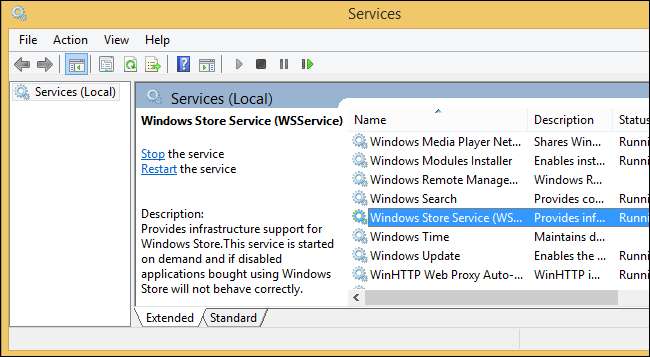 У Windows 8 фонова служба WSService також обробляє “підтримку інфраструктури” для Магазину. Насправді служба ClipSVC у Windows 10 та WSService у Windows 8 мають, по суті, однакові описи в інтерфейсі служб.