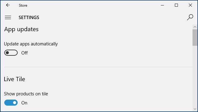 Якщо вас дійсно не турбують ці включені програми, ви можете сказати Магазину Windows не автоматично оновлювати ваші програми. Для цього запустіть Магазин, клацніть піктограму користувача у верхньому правому куті вікна, а потім виберіть опцію «Налаштування». Встановіть повзунок «Автоматичне оновлення програм» у положення «Вимк.».