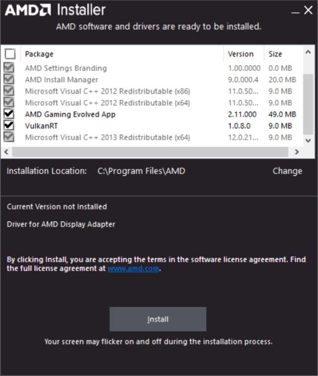 Іноді при першому запуску програми з’являється спливаюче повідомлення про те, що встановлюється пакет, що розповсюджується. Ви це багато помітите, якщо любите ПК, особливо якщо ви отримуєте свої ігри через Steam. Як правило, це означає, що розробник вирішив завантажити найновіший пакет від Microsoft під час встановлення. Іноді пакет додається разом із додатком. Ось знімок інсталяції поточного пакету графічних драйверів AMD, який, на вашу думку, хоче встановити розповсюджувані C ++ 2012 та 2013 років.