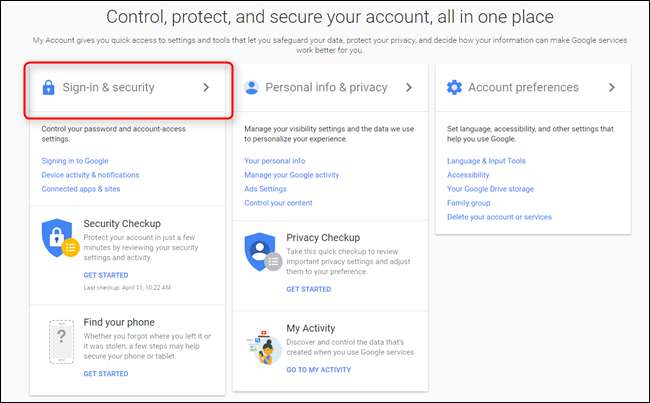 اپنا پاس ورڈ تبدیل کرنے یا 2 قدمی توثیق ترتیب دینے کے ل you ، آپ کو پہلے اپنے پاس میں جانے کی ضرورت ہے گوگل اکاؤنٹ کی ترتیبات ، پھر "سائن ان اور سیکیورٹی" کو منتخب کریں۔