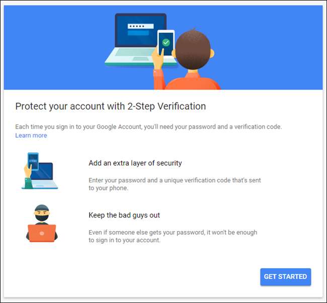 اپنی 2 قدمی توثیقی ترتیبات کو ترتیب دینے یا تبدیل کرنے کیلئے ، آگے بڑھیں اور اس اہم لنک کو "سائن ان اور سلامتی" کے صفحے پر کلک کریں۔ ایک بار پھر ، آپ کو اپنا پاس ورڈ داخل کرنے کا اشارہ کیا جائے گا۔ اگر آپ اپنے Google اکاؤنٹ پر کبھی بھی 2 قدمی توثیق نہیں کرتے ہیں تو ، آپ ، ام ، شروع کرنے کے لئے "اسٹارٹ" باکس پر کلک کر سکتے ہیں۔ یہ آپ سے دوبارہ سائن ان کرنے کو کہے گا ، پھر ٹیکسٹ میسج یا فون کال کے ذریعے کوڈ بھیجیں۔