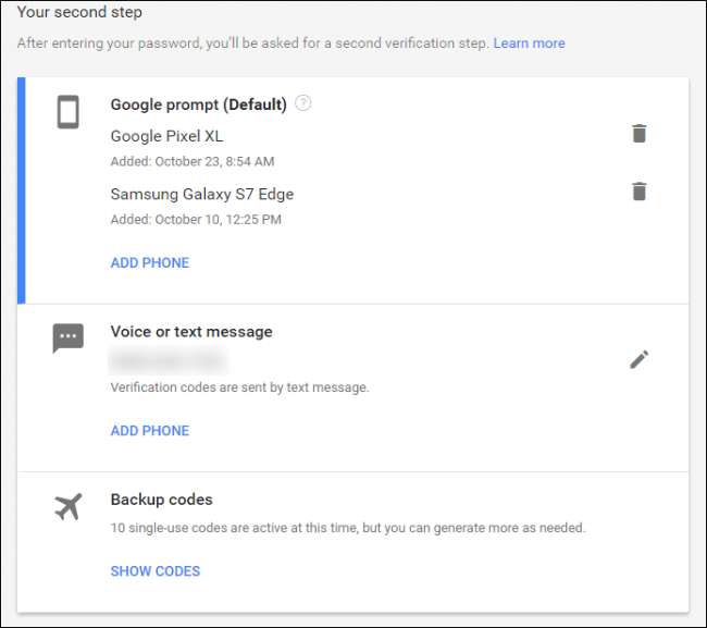 ایک بار جب آپ کے پاس 2 قدمی توثیق ترتیب دی جاتی ہے (اگر آپ نے اسے پہلے جگہ پر ترتیب دے دی تھی) ، تو آپ بالکل ٹھیک کنٹرول کرسکتے ہیں کہ آپ کا دوسرا مرحلہ کیا ہے — یہ وہ جگہ ہے جہاں آپ کوڈ سے کم “گوگل پرامپٹ” طریقہ میں تبدیل ہوسکتے ہیں ، ایک مستند ایپ کے استعمال پر سوئچ کریں ، اور یقینی بنائیں کہ آپ کے بیک اپ کوڈ موجودہ ہیں۔