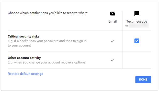آپ اپنی سیکیورٹی انتباہات کو بھی یہاں کنٹرول کرسکتے ہیں۔ یہ ایک سادہ سا حص sectionہ ہے جو بنیادی طور پر آپ کو یہ مقرر کرنے دیتا ہے کہ آپ کو کب اور کہاں مخصوص حادثات کے بارے میں اطلاعات ملتی ہیں ، جیسے "حفاظتی حفاظتی خطرات" اور "اکاؤنٹ کی دوسری سرگرمی"۔