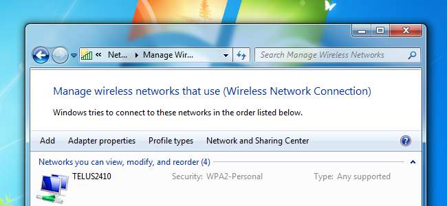پر کلک کریں “ وائرلیس نیٹ ورکس کا نظم کریں آپ کے محفوظ کردہ Wi-Fi نیٹ ورکس کو دیکھنے کے لئے ونڈو کے بائیں جانب آپشن۔