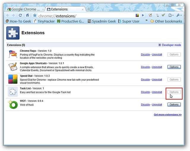توسیع کے انسٹال ہونے کے بعد آپ کو اپنا نیا "ٹاسک لسٹ ٹول بار بٹن" اور ایکسٹینشن مینجمنٹ میسج نظر آئے گا۔