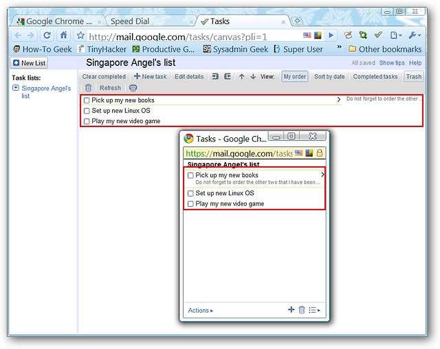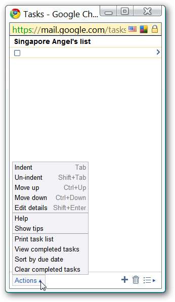 گوگل ٹاسکس تک رسائی حاصل کرنے کے لئے آپ کو "ٹول بار بٹن" پر کلک کریں اور آپ کو اس طرح "ٹاسکس پاپ اپ ونڈو" نظر آئے گا۔ اگر آپ چاہتے ہیں (یا ضرورت ہو) تو آپ خود کروم کو کم سے کم کرسکتے ہیں اور صرف "ٹاسکس پاپ اپ ونڈو" دکھائی دے سکتا ہے۔ یہ ایک بہت اچھی خصوصیت ہے…