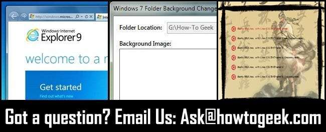 ہفتے میں ایک بار ہم آپ کے دبانے والے تکنیکی سوالات کے جوابات کے ل our اپنے ریڈر میلبگ میں ڈوب جاتے ہیں۔ اس ہفتے ہم انٹرنیٹ 9 ایکسپلورر کو ورژن 9 میں اپ ڈیٹ کرنے ، ونڈوز 7 میں فولڈر کے پس منظر کو حسب ضرورت بنانے ، اور اوبنٹو بوٹلوڈر کو کسٹمائز کرنے سے روکنے پر ایک نظر ڈال رہے ہیں۔