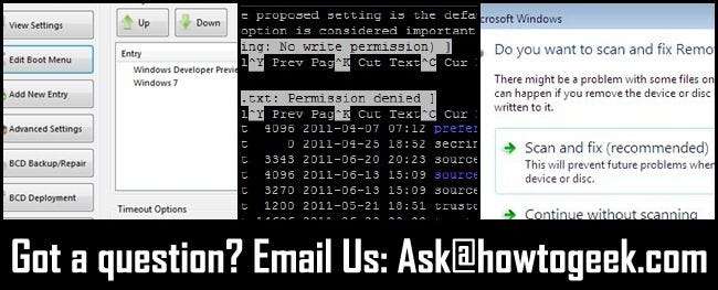 آپ کے سوالات ہیں اور ہمارے پاس جوابات ہیں۔ ہفتے میں ایک بار ہم مٹھی بھر قارئین کے سوالات اٹھاتے ہیں اور جوابات سب کے ساتھ بانٹتے ہیں۔ اس ہفتے ہم ونڈوز 8 کو دوہری تنصیب سے ہٹانے ، لینکس فائل کی اجازت کو سمجھنے اور ونڈوز میں اسکین اور فکس پاپ اپ کو غیر فعال کرنے پر غور کر رہے ہیں۔