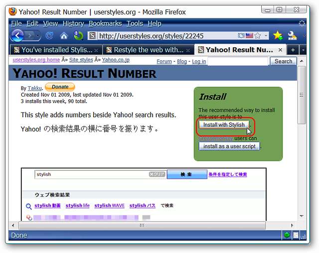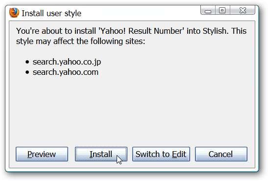 ہم نے یاہو کو انسٹال کرنے کا فیصلہ کیا! نتیجہ نمبر اسکرپٹ۔ جب آپ کو کوئی اسکرپٹ (یا اسکرپٹس) مل جاتا ہے جس کی آپ پسند کرتے ہو تو اسٹائلش بٹن کے ساتھ انسٹال کریں پر کلک کریں۔