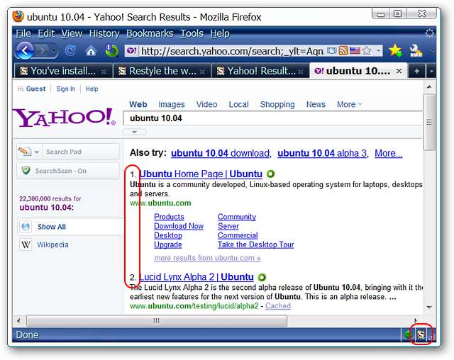 اسکرپٹ نے بالکل کام کیا جب ہم نے یاہو کی تلاشی لی ... اسٹیٹس بار کا آئیکن بھی دھندلا ہوا سے مکمل رنگ میں بدل گیا (ایک اور اشارے کہ ہر چیز اچھی طرح چل رہی ہے)۔