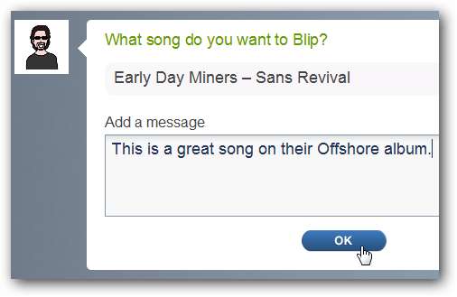 جب آپ گانا صاف کرتے ہیں تو آپ اسی طرح ایک مختصر پیغام شامل کرنے کا انتخاب کرسکتے ہیں جس طرح آپ کسی کو "ٹویٹ" کرتے تھے۔