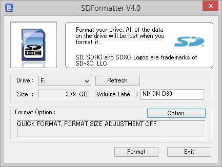 ایس ڈی / ایس ڈی ایچ سی / ایس ڈی ایکس سی کارڈ کنونشنوں کے معیارات پر سختی سے عمل کرنے والے ایک زیادہ سے زیادہ فارمیٹ کے حصول کے ل we ، ہم ایس ڈی ایسوسی ایشن (عالمی ایس ڈی کارڈ کے معیار پر نگاہ رکھنے والی تنظیم) کی طرف سے بلا معاوضہ فراہم کردہ آسان ایس ڈی فارورمیٹر ٹول کا رخ کرسکتے ہیں۔ آپ کر سکتے ہیں یہاں ونڈوز یا OSX کے لئے ایک کاپی پکڑو .