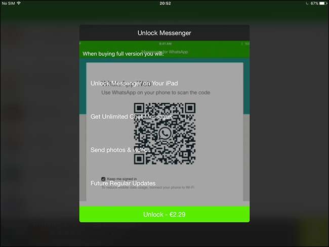 ظاہر ہے کہ یہ مفت ایپس چل رہی تھیں۔ اگلا ، میں نے کوشش کی میسنجر برائے واٹس ایپ پرو ، $ 1.99 کی خریداری۔ اس ایپ… کام کیا۔ یا کم از کم ، اس معنی میں اس نے کام کیا کہ اس نے ویب ایپ کو آئی او ایس ریپر میں بنڈل کر کے اپنے آئی پیڈ پر قابل رسائی بنایا ہے۔ مسئلہ یہ ہے کہ ، آئی پیڈ پر ویب ایپ خوفناک ہے ، جیسا کہ پہلے ہی ہم نے تبادلہ خیال کیا ہے… اور 99 1.99 کی ادائیگی کسی چیز کے ل little تھوڑا سا پاگل لگتا ہے جو مجھے مفت میں مل سکتا ہے۔