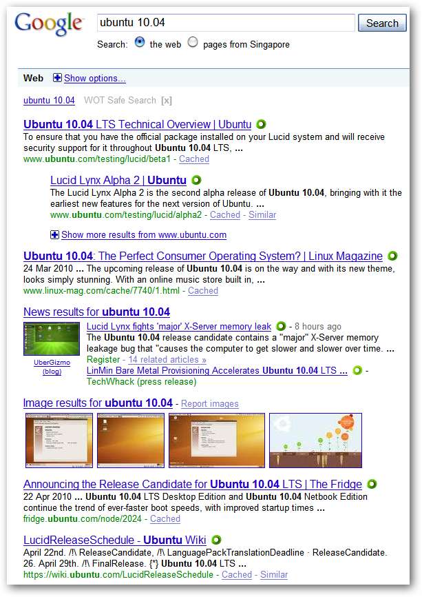 فیویکنز اور گوگل پری ویو امیجز کو شامل کرنے کے بعد ہمارا تلاش کے نتائج کا سیٹ۔
