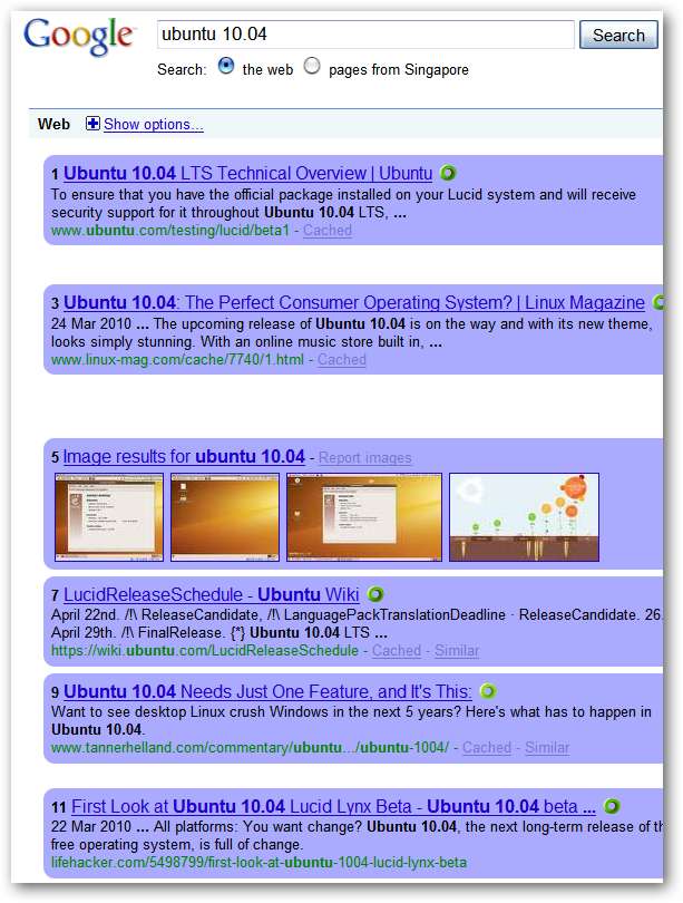 اوپر دکھائے گئے اسی سرچ پیج کو تازہ دم کرنے سے پہلے ہی ایک نمایاں فرق نظر آتا ہے۔ ہلکے نیلے رنگ کا پس منظر تلاش کے نتائج کو تھوڑا بہتر بناتا ہے۔ یہ پہلے سے بہتری ہے لیکن آپ یقینی طور پر دیکھنا چاہتے ہیں کہ آپ کتنا دور جاسکتے ہیں…