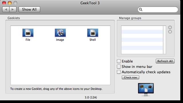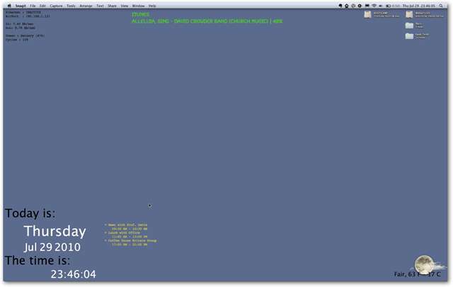 OS X کیلئے GeekTool آئی ٹیونز اور اس سے زیادہ کے کھیل کو کھیل سے باہر کا موسم دکھانے سے لے کر بہت ساری چیزوں کے اہل ہے۔ یہ جامد اور متحرک معلومات دونوں ظاہر کرسکتا ہے۔