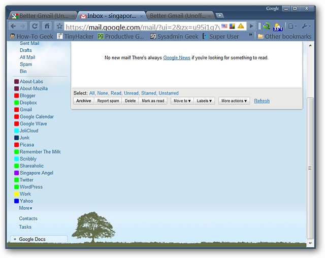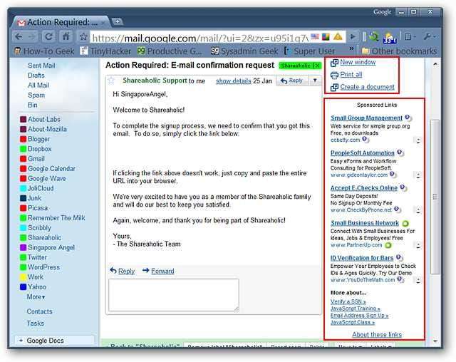 "نئی ونڈو ، سبھی کو پرنٹ کریں ، اور دستاویزات کے احکامات بنائیں" یقینی طور پر ہمارے ای میل کے اوپر ایک چھوٹی سی ٹول بار کی حیثیت سے کافی بہتر نظر آتے ہیں۔ اور دائیں طرف… آپ خود دیکھ سکتے ہیں کہ اس سے کتنا بہتر نظر آتا ہے۔ جب آپ اپنا ای میل پڑھتے ہو تو آپ کو پریشان کرنے کے لئے مزید رکاوٹوں کی ضرورت نہیں ہے۔