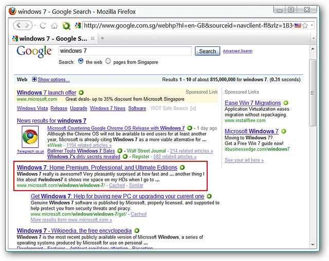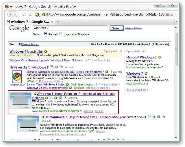 اپنی مثال کے طور پر ہم نے گوگل میں "ونڈوز 7" کی تلاش کرنے کا فیصلہ کیا ہے۔ جیسا کہ آپ دیکھ سکتے ہیں کہ بہت سارے نتائج موجود ہیں لیکن اگر آپ ان نتائج کو اضافی فعالیت کے ساتھ بڑھا سکتے ہیں تو کیا ہوگا؟ بیان کردہ تلاش کے نتائج کو دیکھیں…