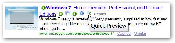 اس کے بجائے فوری نظر میں دلچسپی رکھتے ہو؟ "کوئیک پیش نظارہ" پر کلک کرنے سے سرچ نتائج کے "وسط" میں اسکرول بار کے ساتھ ایک منی ونڈو کھل جائے گی۔ "کوئیک پیش نظارہ" کو بند کرنے کے لئے دوبارہ "میگنفائنگ گلاس آئیکون" پر دوبارہ کلک کریں اور آپ کی تلاش کا نتیجہ معمول پر آگیا۔