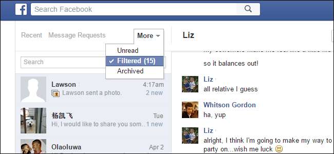 تاہم ، وہاں بھی ہے مزید . کسی بھی وجہ سے فیس بک کے ذریعہ فلٹر کیے گئے پیغامات کا پورا ، تیسرا سیٹ دیکھنے کے لئے "فلٹر کردہ درخواستیں دیکھیں" پر کلک کریں۔