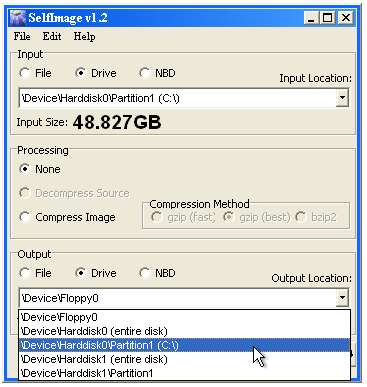 یہاں ایک اور ٹول ہے جسے سیلف امیج کہا جاتا ہے جو صارف کی دوستانہ نظر نہیں آتا ہے ، لیکن آپ کو کچھ کلکس کی مدد سے ایک ڈرائیو کلون کرنے دیتا ہے۔