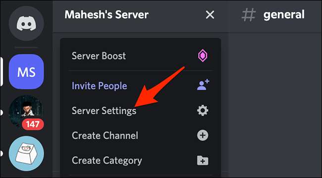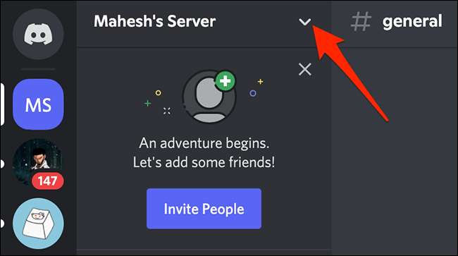 آپ کا سرور اسکرین کھل جائے گا. اس اسکرین پر، آپ کے سرور کے نام کے اوپر اوپر بائیں کونے میں، نیچے تیر آئکن پر کلک کریں.