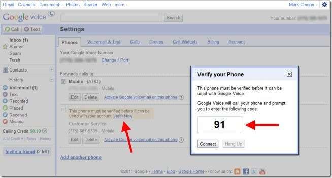 نئے فون نمبر میں اندراج کے قریب "اب تصدیق کریں" لنک پر کلک کرکے نئے فون نمبر کی تصدیق کریں۔ گوگل وائس نمبر پر کال کرے گا اور آپ کو کوڈ درج کرنے کا اشارہ کرے گا۔ ایک بار جب یہ مطلوبہ اقدام مکمل ہوجائے تو ، کال وجیٹ کے ساتھ نمبر استعمال کرنے کے لئے دستیاب ہے۔