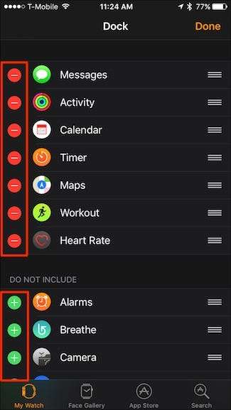 گود میں ایپس شامل کرنے کے ل it ، اس کے بائیں طرف سبز "+" بٹن کو تھپتھپائیں۔ گود سے ایپس کو ہٹانے کے لئے ، سرخ "-" بٹن پر ٹیپ کریں۔