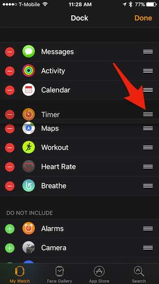 یہ سبھی حرکتیں اپنے آئی فون پر واچ ایپ کا استعمال کرکے بھی انجام پاسکتی ہیں۔ پہلے ، ایپ کھولیں اور پھر "گودی" پر تھپتھپائیں۔
