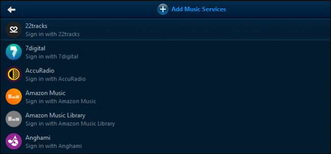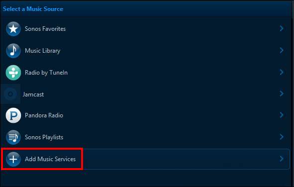 متبادل کے طور پر ، آپ اسی نتیجہ کو حاصل کرنے کے لئے ایک میوزک سورس منتخب کریں کے تحت "میوزک سروسز شامل کریں" کے بٹن پر کلک کرسکتے ہیں۔
