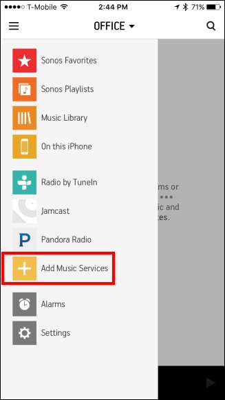 آئی فون یا اینڈروئیڈ جیسے موبائل آلہ پر ، عمل ایک جیسے ہی ہے۔ اس کا سب سے واضح طریقہ یہ ہے کہ مینو میں موجود بٹن کو تھپتھپائیں جس میں "میوزک سروسز شامل کریں" کہا گیا ہے۔