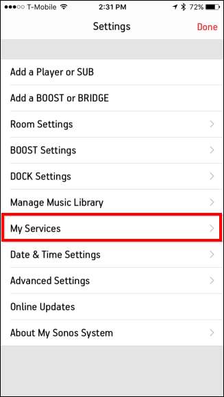 یا ، آپ "ترتیبات" کے بٹن اور پھر "میری خدمات" کو تھپتھپا سکتے ہیں۔