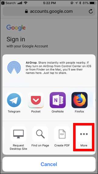 آپ کو پہلے ضرورت ہوگی شیٹ شیٹ ایکشن کو قابل بنائیں اس سے پہلے کہ آپ اسے استعمال کرسکیں۔ ایک بار جب آپ ایک بار یہ کام کرلیں تو ، مستقبل میں آسانی سے دستیاب ہوجائے گا۔ ایسا کرنے کے لئے ، شبیہیں کی دوسری قطار کے دائیں طرف سکرول کریں اور "مزید" پر ٹیپ کریں۔