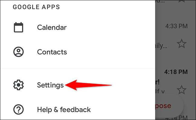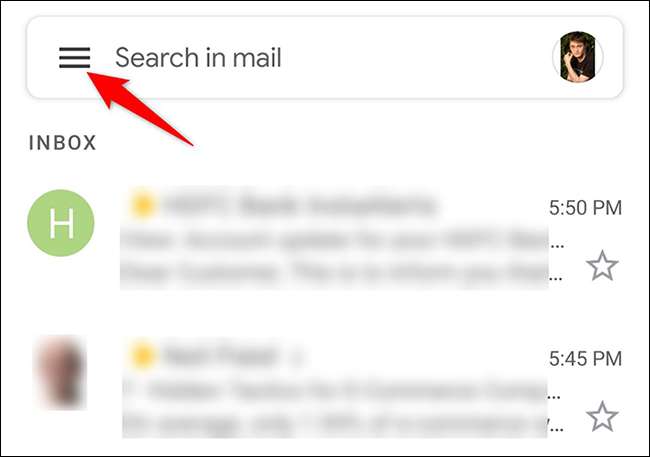 Gmail اے پی پی میں، سب سے اوپر بائیں کونے سے، ہیمبرگر مینو (تین افقی لائنوں) کو نلائیں.