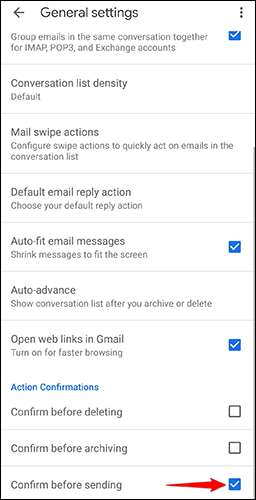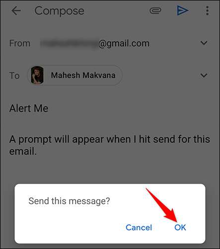 یہ کام یہ ہے کہ آپ اپنے لوڈ، اتارنا Android فون پر Gmail میں ایک اختیار کو فعال کریں. اس کے بعد، جب آپ ایپ میں ایک نیا ای میل تیار کرتے ہیں اور بھیجنے والے بٹن کو نلاتے ہیں، تو آپ کو آپ کے ای میل بھیجنے سے پہلے آپ کے حتمی تصدیق کے لئے ایک باکس ملتا ہے.