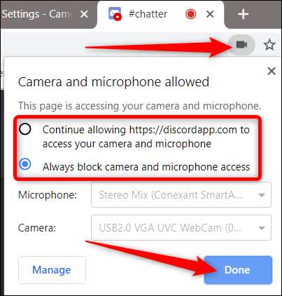 جب کسی سائٹ کو آپ کے مائیکروفون یا کیمرہ تک رسائی حاصل ہوتی ہے تو ، دائیں جانب اومنی بکس میں ایک آئکن نمودار ہوگا۔ اگر آپ اس آئیکن پر کلک کرتے ہیں تو ، آپ ہمیشہ رسائی کو روکنے یا سائٹ تک رسائی کی اجازت جاری رکھنے کا انتخاب کرسکتے ہیں۔ ایک بار پھر ، آپ کو کسی بھی تبدیلی کے اثر آنے کے ل the پیج کو دوبارہ لوڈ کرنا ہوگا۔