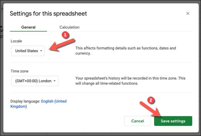 Google شیٹس آپ کے علاقے کے عام کنونشن کا استعمال کرتے ہیں کہ یہ تعین کرنے کے لئے کہ آیا دن یا مہینے پہلے تاریخ ٹائمسٹیمپ میں سب سے پہلے آتا ہے. کسی خاص اسپریڈ شیٹ کے لئے تاریخ کی شکل کو تبدیل کرنے کے لئے، آپ کو اس علاقے میں "مقامی" ترتیب کو تبدیل کرنے کی ضرورت ہوگی جسے آپ کو استعمال کرنا پسند ہے.