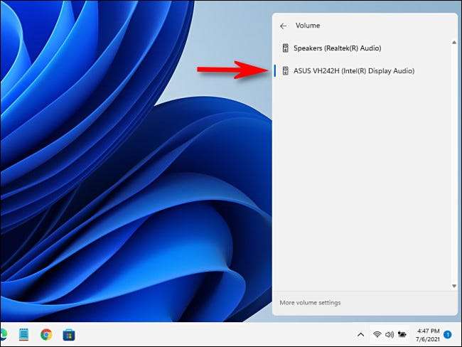 آپ بھی تیزی سے ونڈوز 11 ٹاسک بار سے اسپیکر کو سوئچ کریں . ایسا کرنے کے لئے، ٹاسک بار کے نچلے دائیں کونے میں اسپیکر آئیکن کے ارد گرد پوشیدہ بٹن پر کلک کرکے فوری ترتیبات کے مینو کو کھولیں.