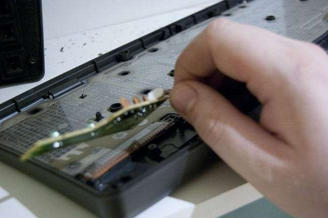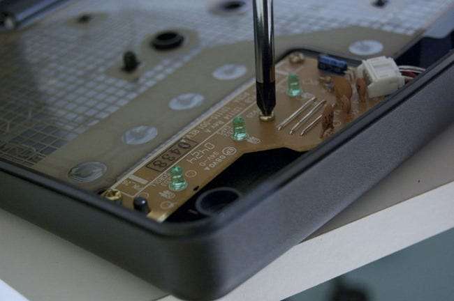 کنٹرولر کو متعدد پیچ کے ذریعہ پکڑ لیا جائے گا اور PS2 یا USB کیبل سے منسلک ہوگا جو اس معاملے سے باہر نکلتا ہے۔ آپ کے اسی سکریو ڈرایور کو انہیں جاری کیے بغیر ختم کرنا چاہئے۔
