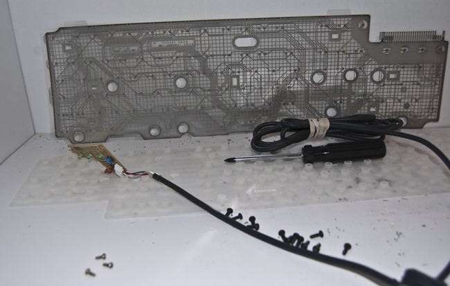 اور آپ کے مختلف حصے ، بشمول لچکدار سرکٹ بورڈ ، کنٹرولر اور کیبل ، گنبد سوئچ جھلی ، اور تمام مختلف پیچ۔ ایک بار پھر ، انہیں ایک محفوظ جگہ پر رکھیں۔ تم نہیں کریں گے ان کی صفائی کرو