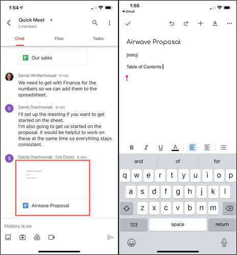 آپ گوگل چیٹ یا Gmail کے موبائل اطلاقات میں ایک دستاویز کی تخلیق نہیں کر سکتے ہیں (2021 کے جون میں اس تحریر کے طور پر)، لیکن آپ کر سکتے ہیں ایک کمرے میں تخلیق کیا گیا تھا کہ ایک دستاویز کو کھولنے.