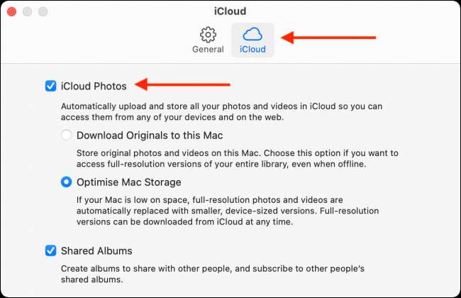 "iCloud" ٹیب پر جائیں اور "iCloud فوٹو" کے اختیارات کو نشان زد کریں.